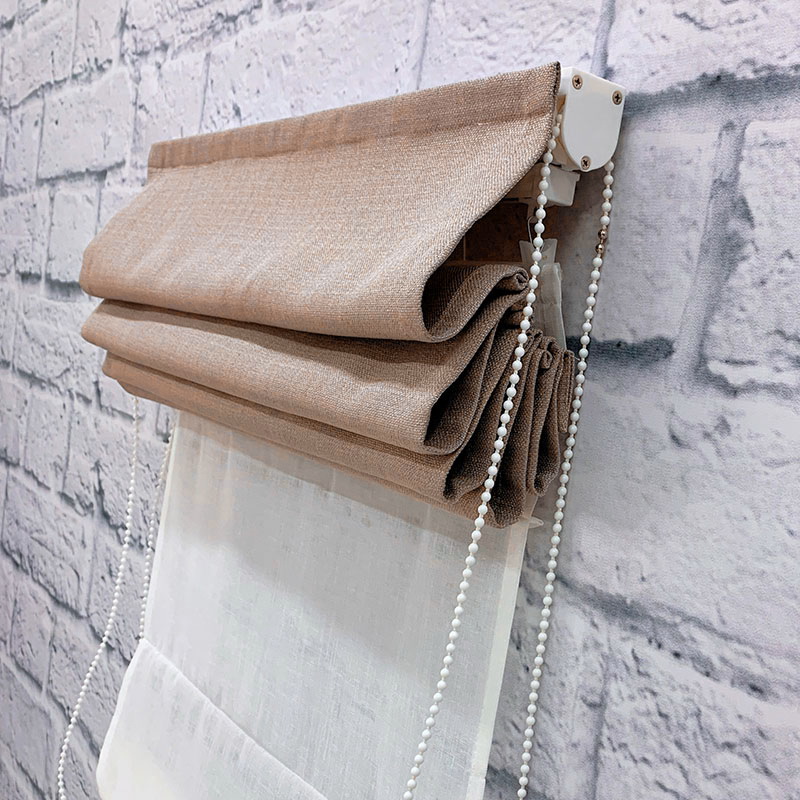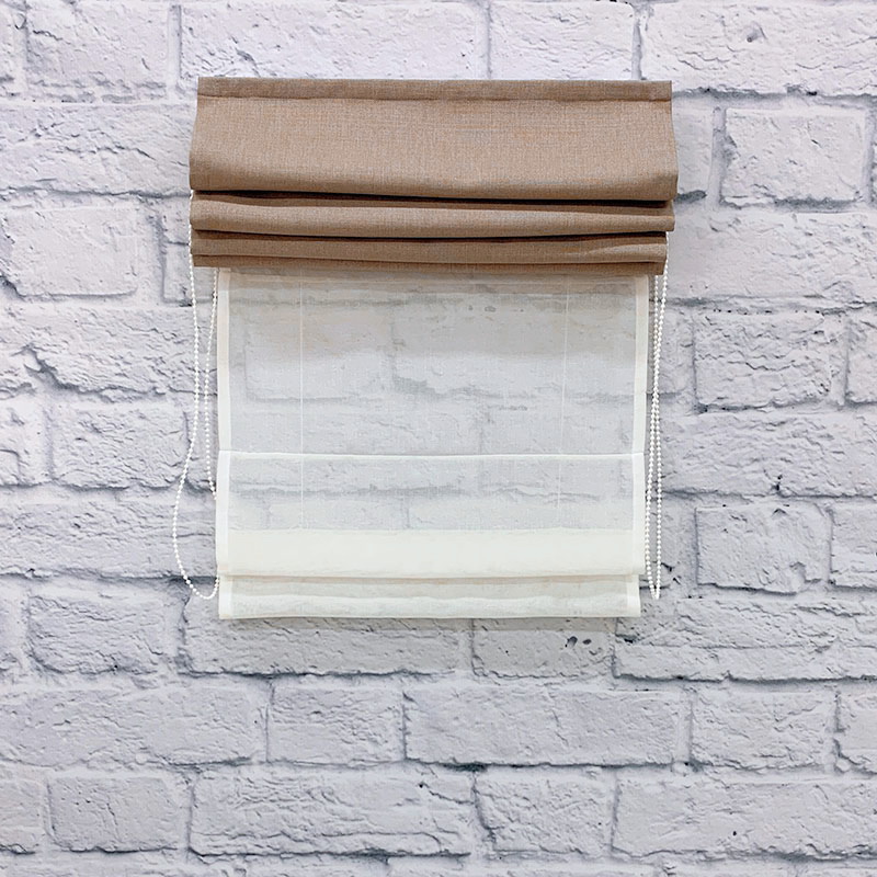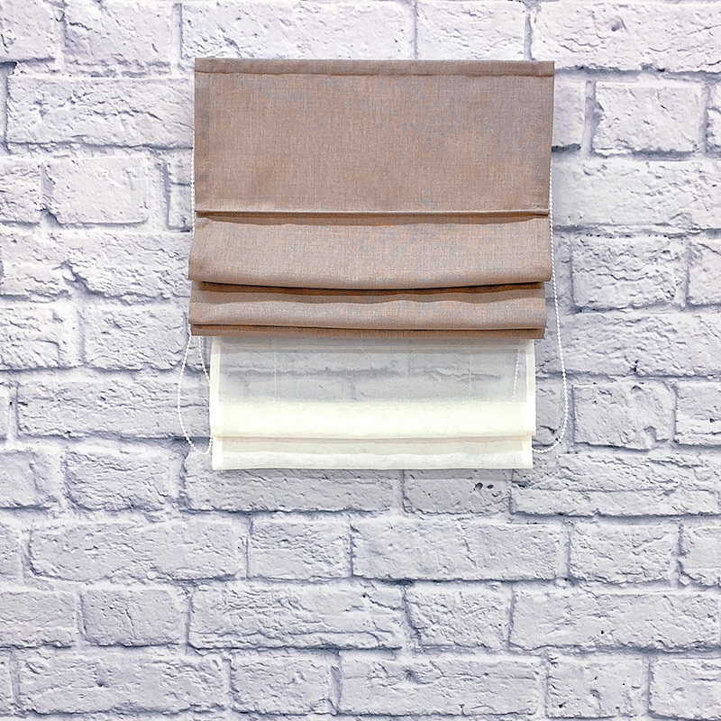 Двойная римская штора с карнизом Lotos/ v27. В комплекте карниз с цепочным управлением. Три стандартных варианта тюля на выбор. Средняя стоимость квадратного метра комплекта 6238 руб.