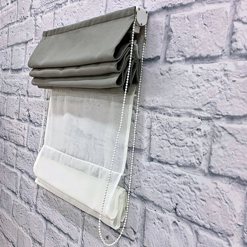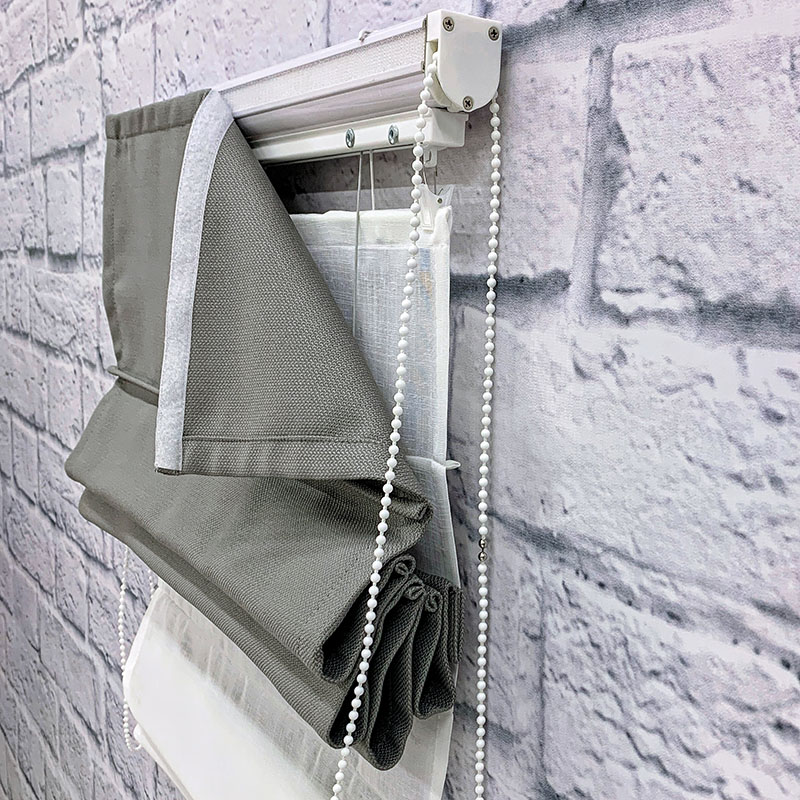 Двойная римская штора с карнизом Meri/110 . В комплекте карниз с цепочным управлением. Три стандартных варианта тюля на выбор. Средняя стоимость квадратного метра комплекта 6238 руб.